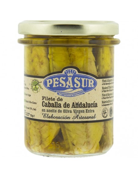 PESASUR Maquereau andalou dans un bocal d'huile d'olive extra vierge biologique fait à la main 145 g