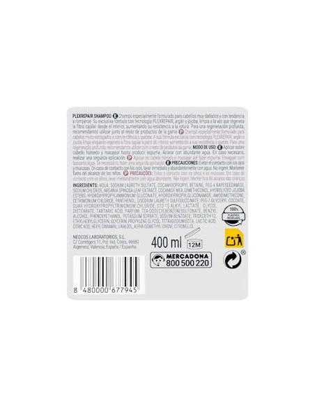 Deliplus Plex Repair Shampooing à l'argan et au jojoba pour cheveux très abîmés 400ml