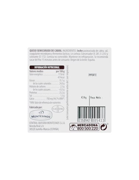 Fromage de chèvre semi-affiné Hacendado 0,39kg