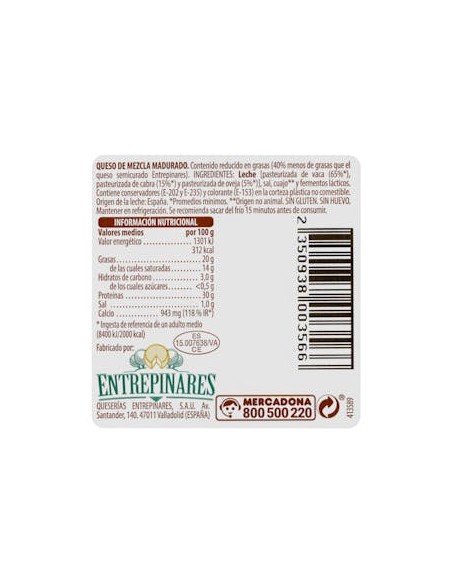 Hacendado, mélange de fromages légers à pâte semi-cuite 0,38kg