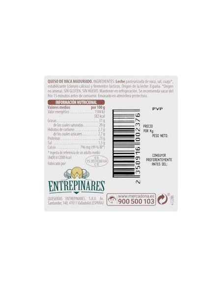 Fromage de vache à pâte molle Hacendado coupé en quartiers 0,33kg