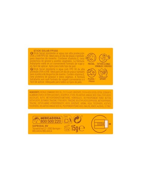 Stick écran solaire pour le visage & zones sensibles Deliplus FPS 50 résistant à l'eau