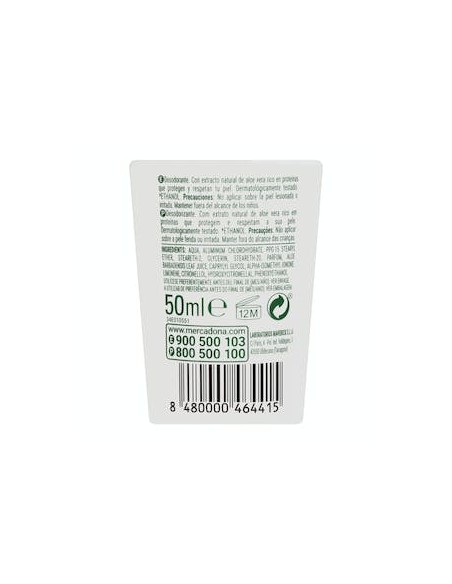 Déodorant roll-on soin aloe Deliplus 0 % alcool 50ml