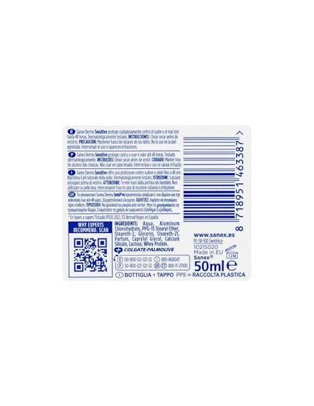 Déodorant roll-on dermo sensible Sanex 0% alcool 50ml