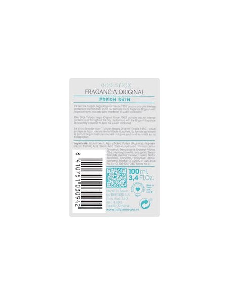Déodorant stick original Tulipe Noir 0% parabènes et sels d'aluminium 100ml