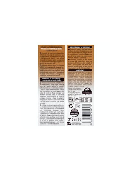 Mousse autobronzante transparente pour le corps Deliplus 210ml