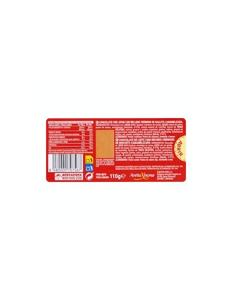 Chocolat au lait Fussion Hacendado fourré au biscuit belge Comprimé 110 g