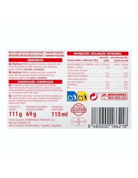 Moules à la sauce aux pétoncles Hacendado petites 13-18 pièces Boîte de 111 g (69 g...