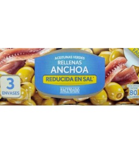 Olives farcies aux anchois Hacendado réduits en sel